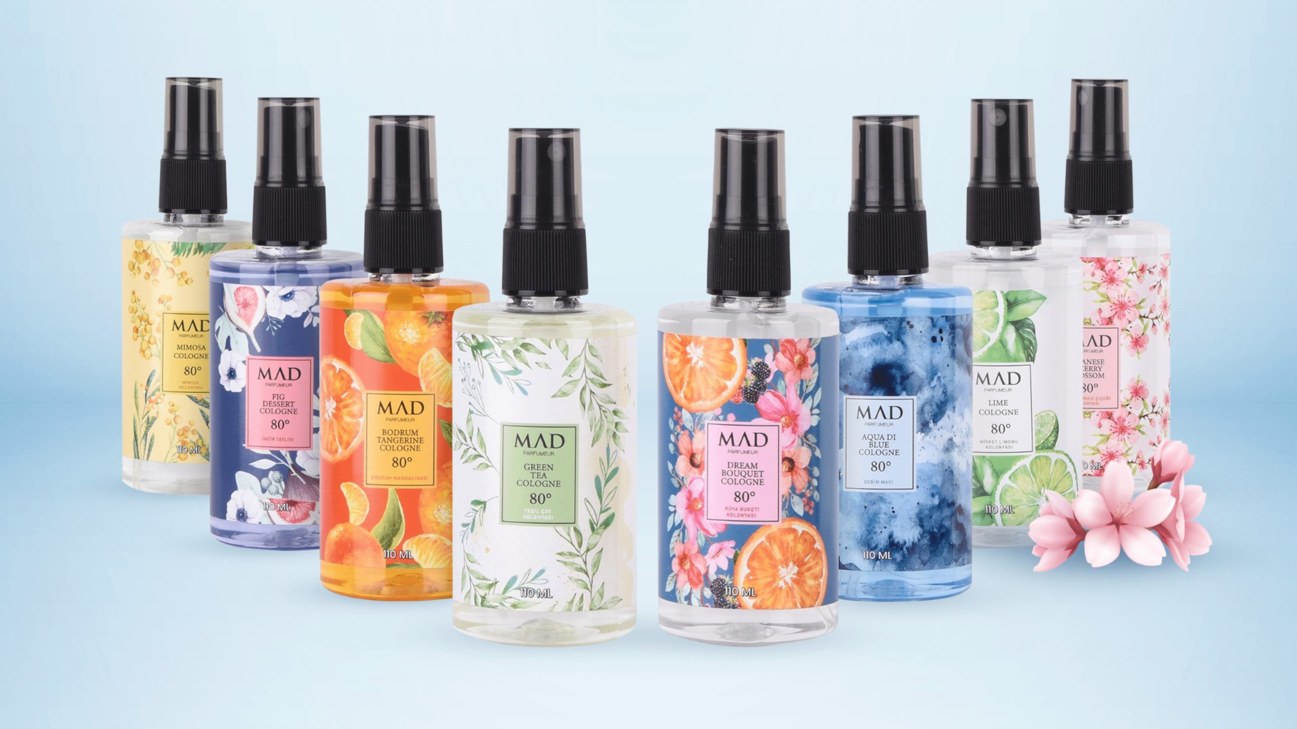 Mad Parfüm, Türkiye’de başlayan başarı yolculuğunu bugün dünya çapında sürdüren, sektörün en güçlü markalarından biri. Biz de ajans olarak, bu büyük markanın piyasaya sunduğu kolonyaların etiket tasarımlarına ve katıldıkları fuarlardaki tüm video prodüksiyonlarına imza atarak onların hikayesine yaratıcı dokunuşlarımızla eşlik ediyoruz. Her geçen gün büyüyen, global başarılara imza atan bu değerli markayla birlikte yol almaktan büyük mutluluk duyuyoruz.